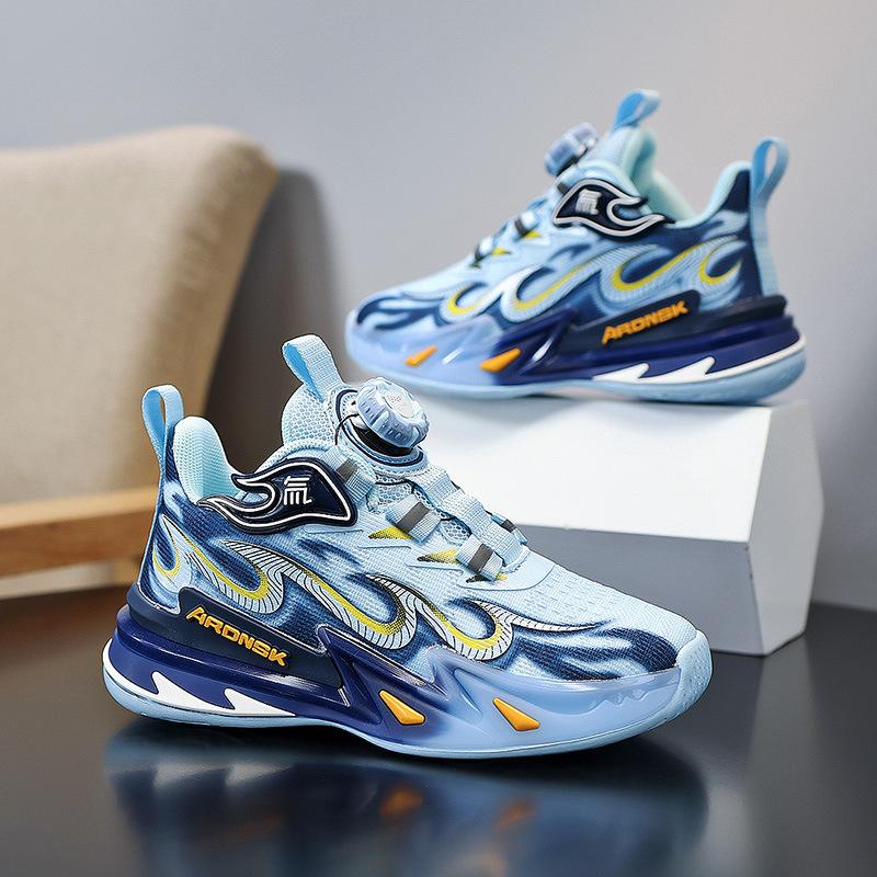 Обувь для мальчиков осень и зима 2025 новая детская баскетбольная обувь вращающаяся пряжка средние и старшие мальчики мягкая подошва воздушная подушка кроссовки для бега