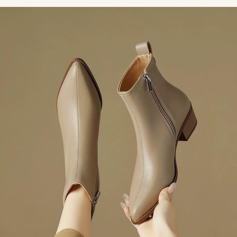 Вступите в сезон с элегантностью и комфортом в этих стильных ботильонах, разработанных специально для женщин.. Эти ботинки, изготовленные из премиальной овчины, имеют шикарный заостренный носок и универсальный средний, массивный каблук, который добавляет как высоту, так и устойчивость.. Бархатная подкладка дарит ощущение роскоши и тепла, что делает их идеальными для ношения осенью.. Резиновая подошва обеспечивает отличное сцепление и долговечность, а удобная застежка-молния позволяет легко надевать и снимать.. Эти ботинки легко сочетают в себе модный дизайн с практичной функциональностью, что делает их незаменимым дополнением к любому гардеробу.