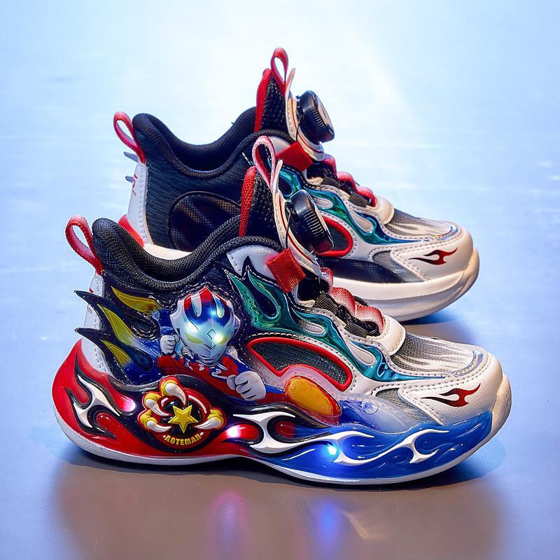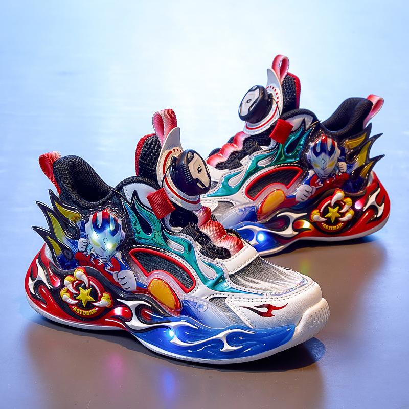 Детская обувь Ultraman 2025 весна новая детская легкая спортивная обувь светящаяся мальчики нескользящая для бега студенты