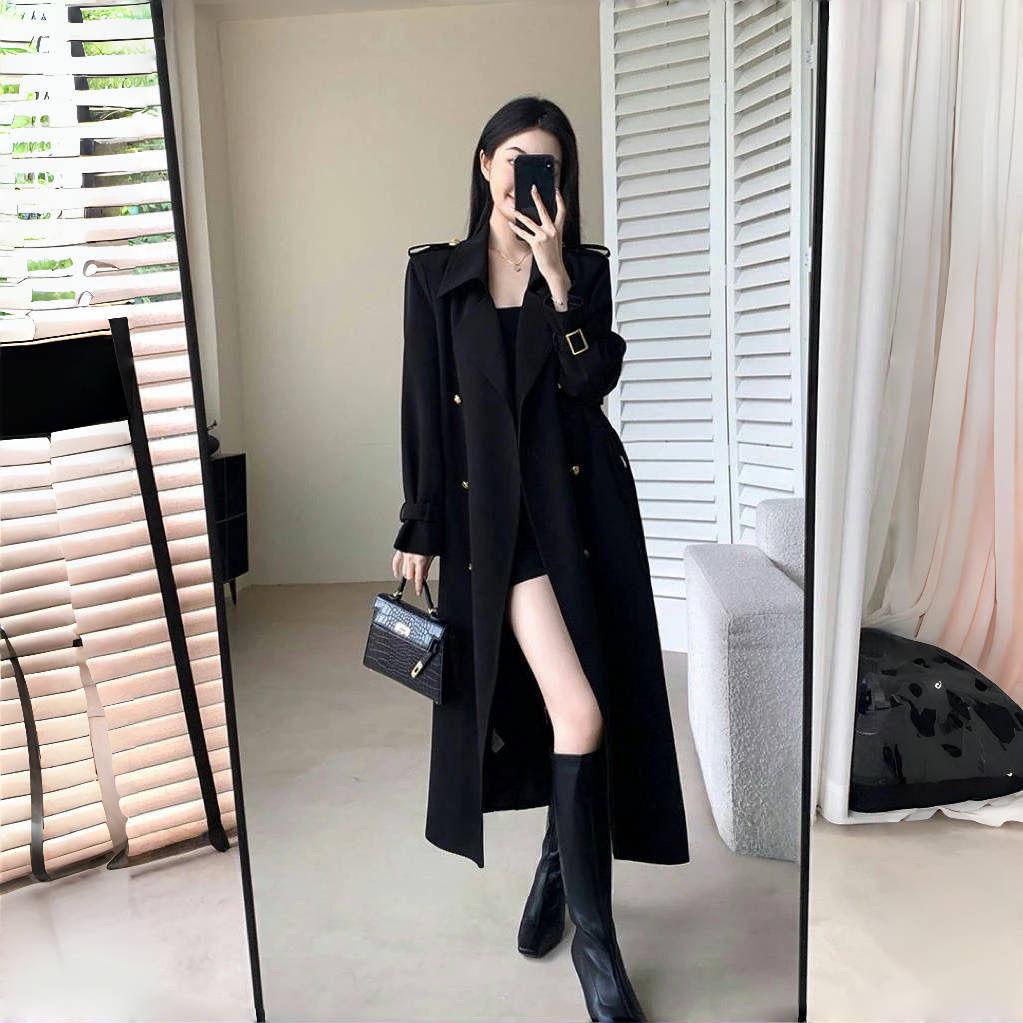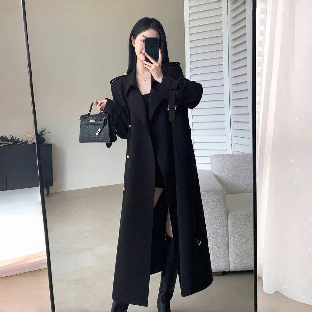 2025 Черный тренч средней длины: Британский стиль «старые деньги» для весны и осени