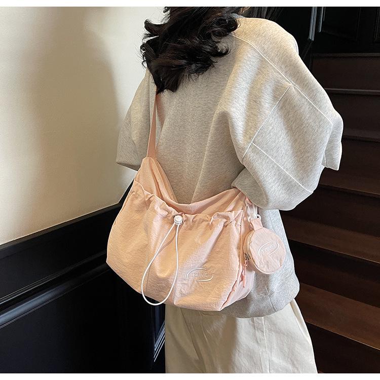 Холщовая сумка-тоут большой вместимости в корейском стиле - 2025 Осенняя плиссированная нишевая сумка через плечо