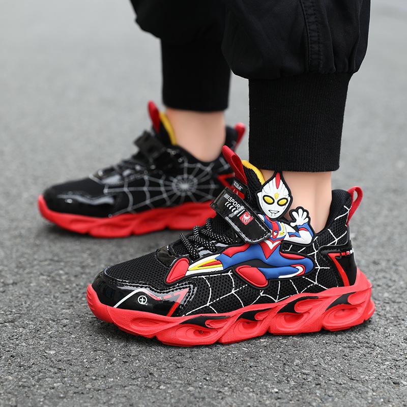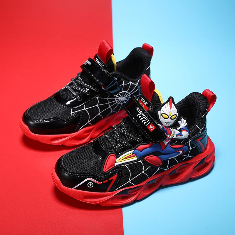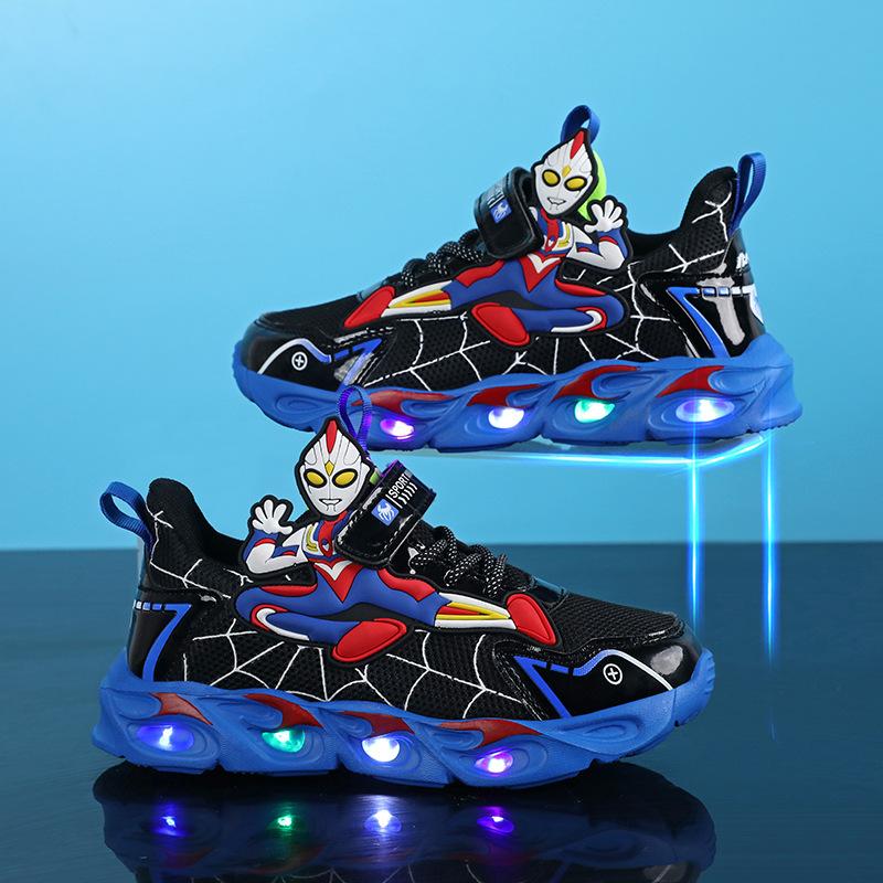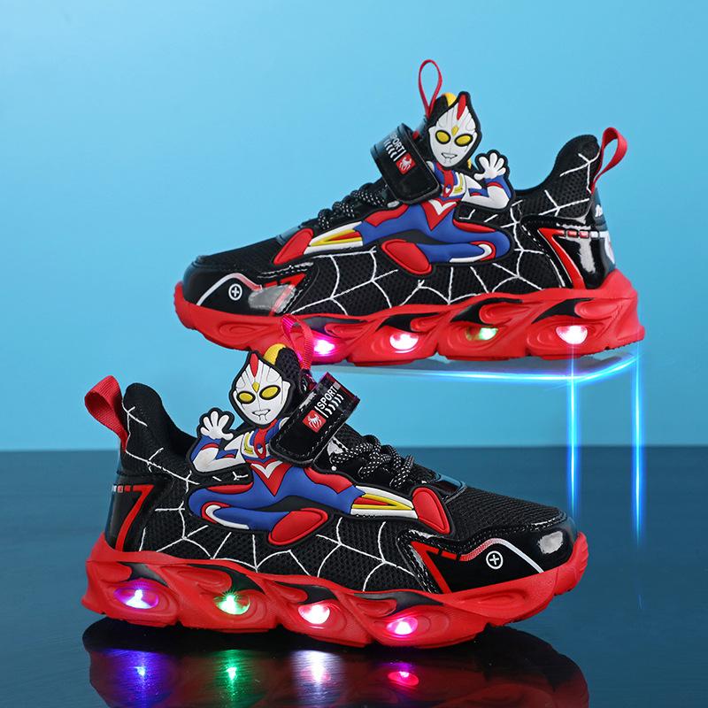 Обувь для мальчиков Ultraman светящаяся обувь сетчатая дышащая 2025 новая детская мультяшная спортивная обувь светящиеся кроссовки прилив