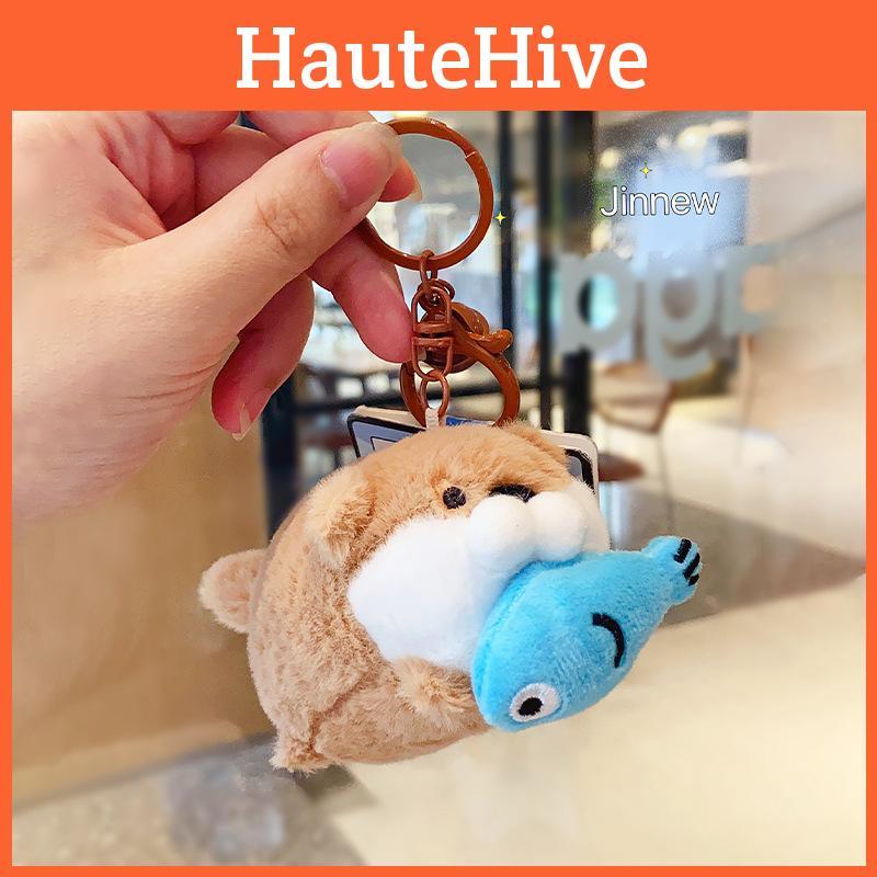 Восхитительный дизайн: Этот плюшевый брелок с очаровательной выдрой, наслаждающейся маленькой рыбкой, добавит игривый и причудливый штрих к вашим аксессуарам.