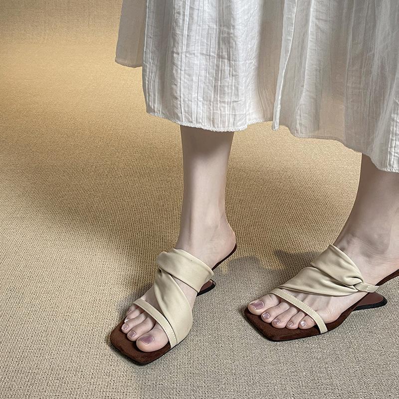 Новые нишевые ленивые сандалии на высоком каблуке для женской летней носки, клиновидный каблук, крутые шлепанцы, женская обувь с открытым носком