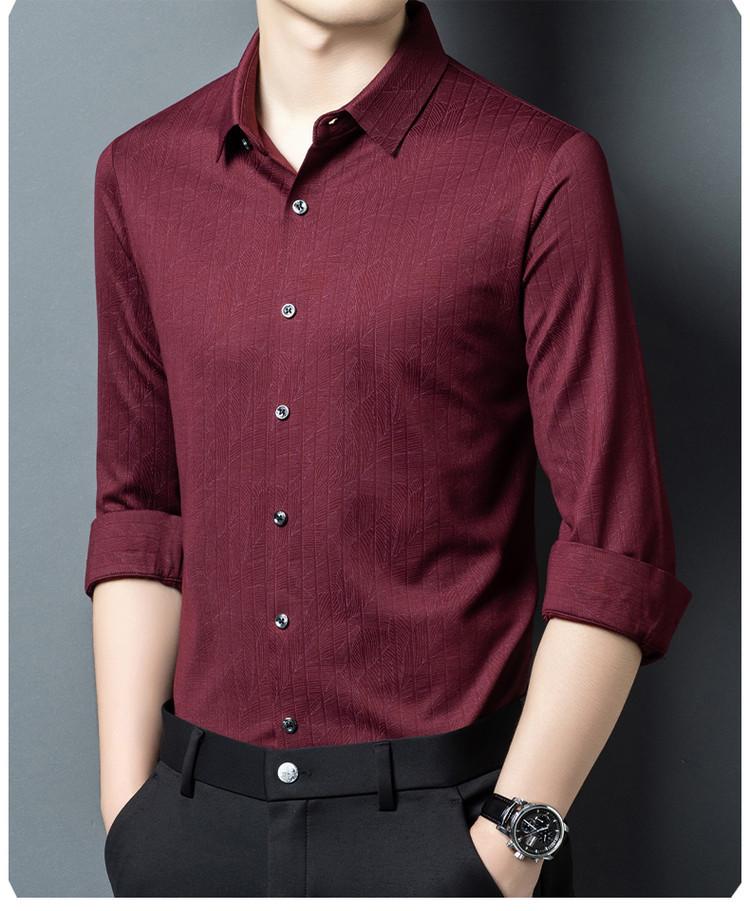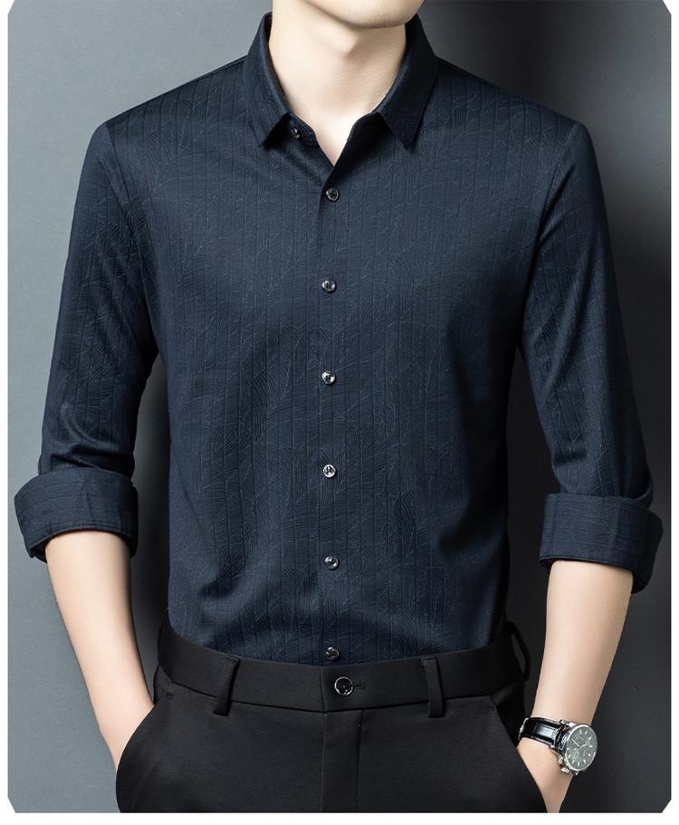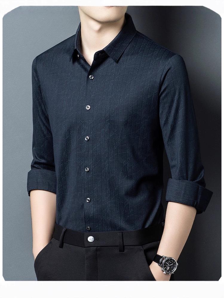 Осенняя бесшовная мужская рубашка с длинным рукавом, высокой эластичности, не требующая глажки, устойчивая к сминанию, для бизнеса