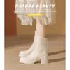 Осень и зима новые маленькие короткие ботинки женские толстый каблук тонкие ботинки круглый носок супермягкая толстая подошва белые короткие ботинки тренд
