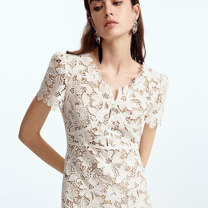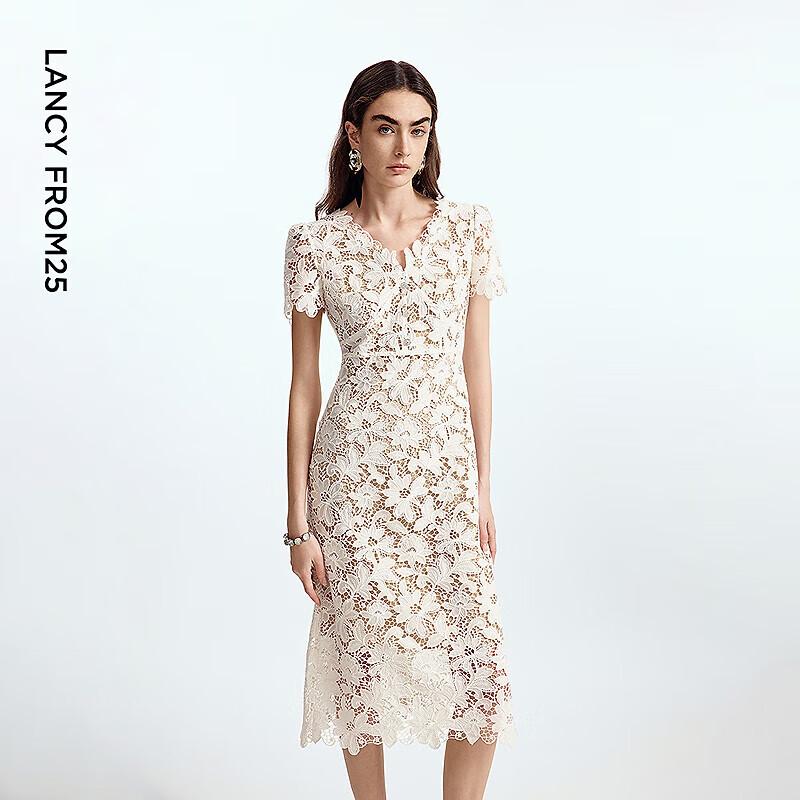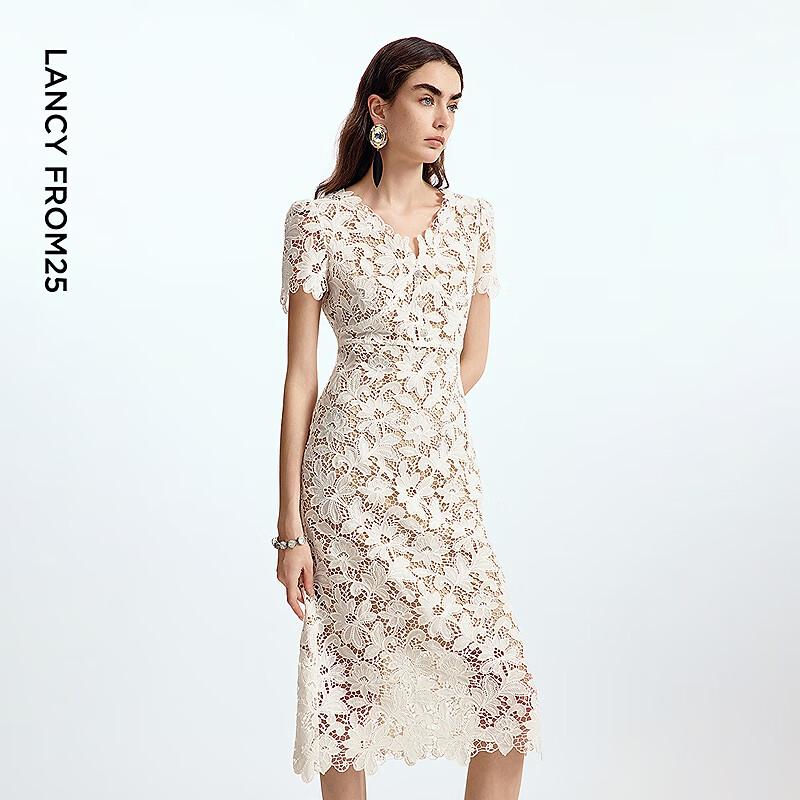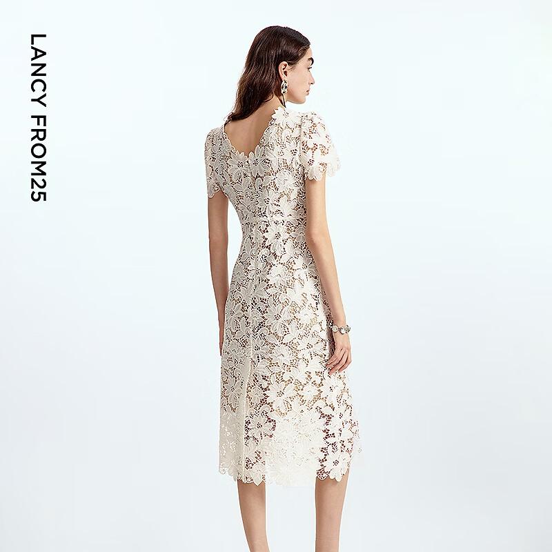LANCY Элегантное полуформальное платье с V-образным вырезом, кружевной отделкой и вырезами, приталенного силуэта