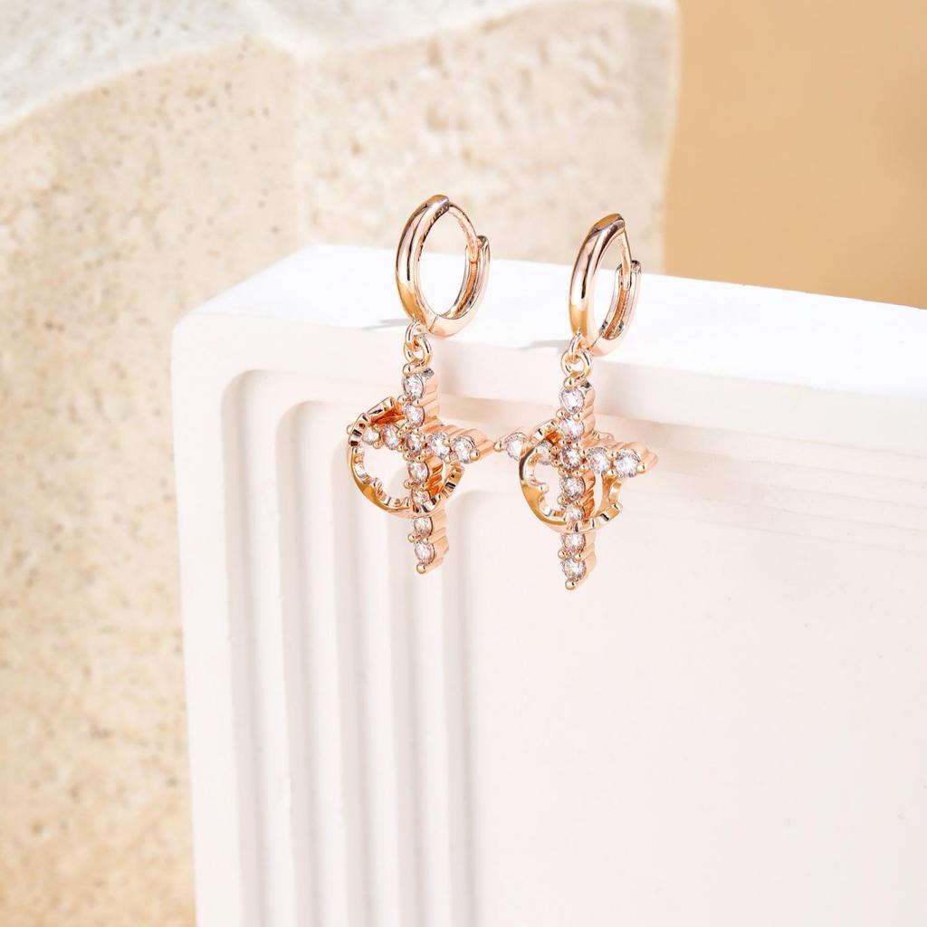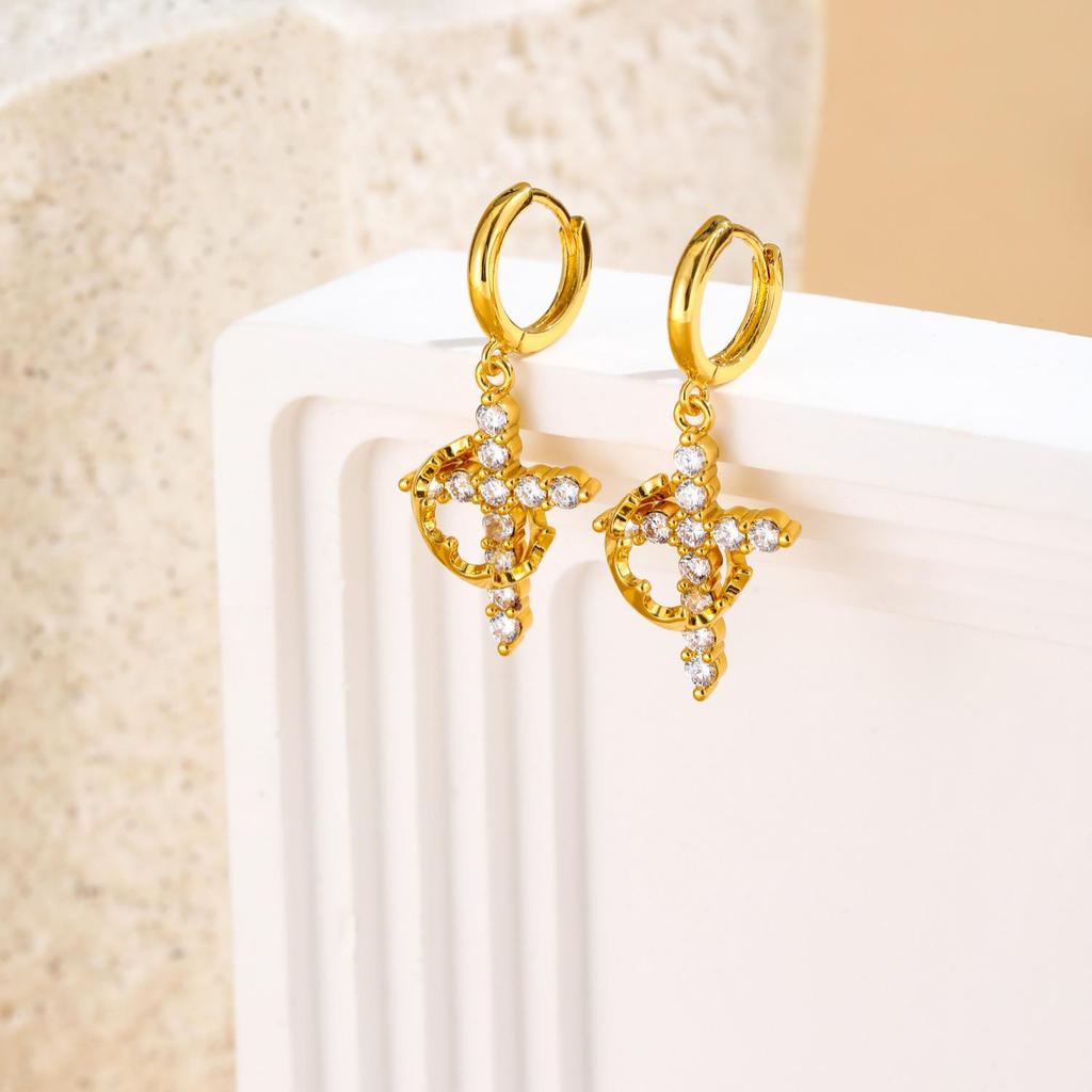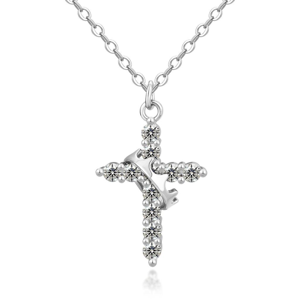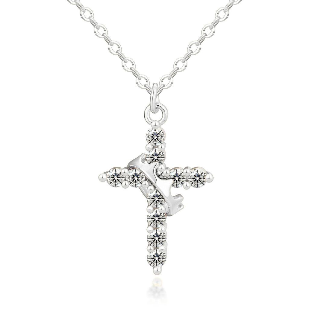 Женское колье-крест с короной из 18-каратного золота с экологически чистым никель-свободным гальваническим покрытием и циркониями.