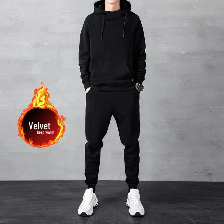 Мужской худи и джоггеры на флисовой подкладке в корейском стиле, комплект больших размеров, модная повседневная одежда