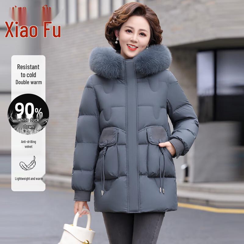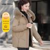Женский пуховик средней длины с капюшоном