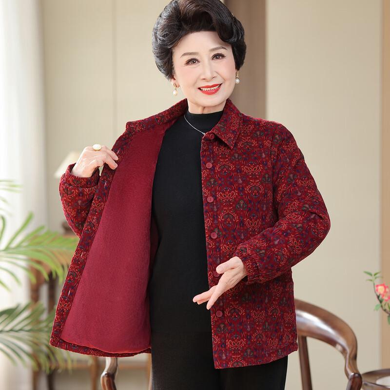 Elderly Women's Floral Corduroy Padded Jacket — купить товар онлайн с бесплатной доставкой по всему миру!