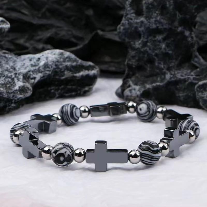Натуральный крестовый камень черный браслет из бусин для пар минималистичный стиль холодного ветра