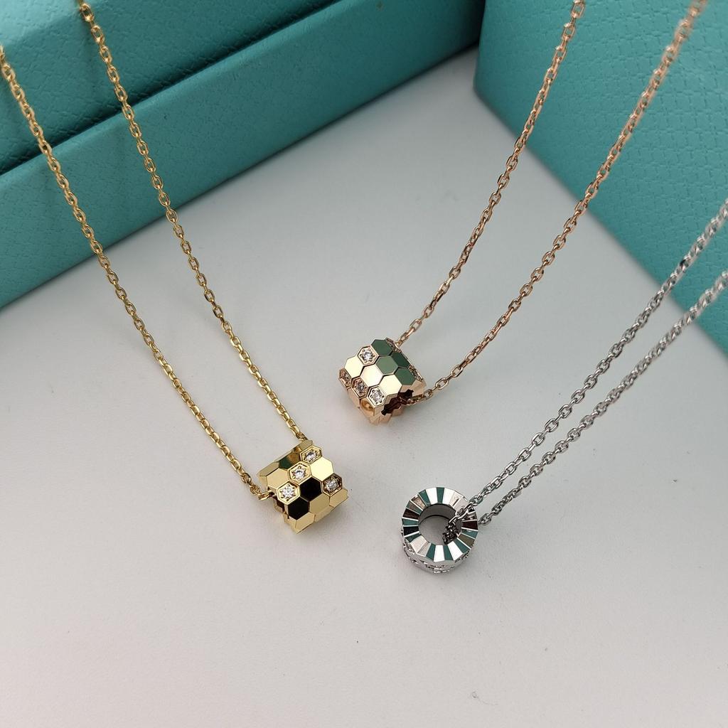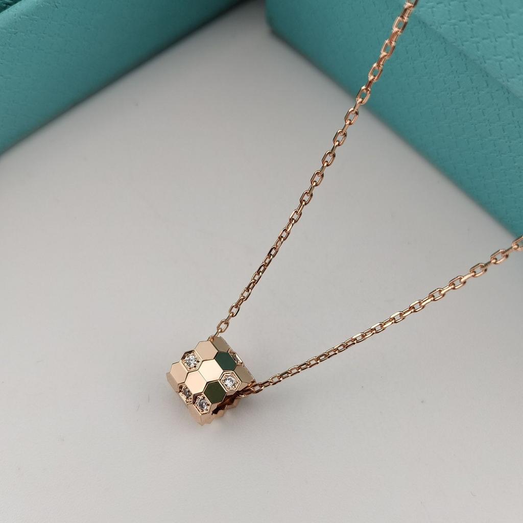 V Золотой Сотовый Кулон Shangmei Женский Дизайн Легкой Роскоши Ромбовидная Решетка Бриллиантовый Сотовый Подвеска Цепочка для Ключицы