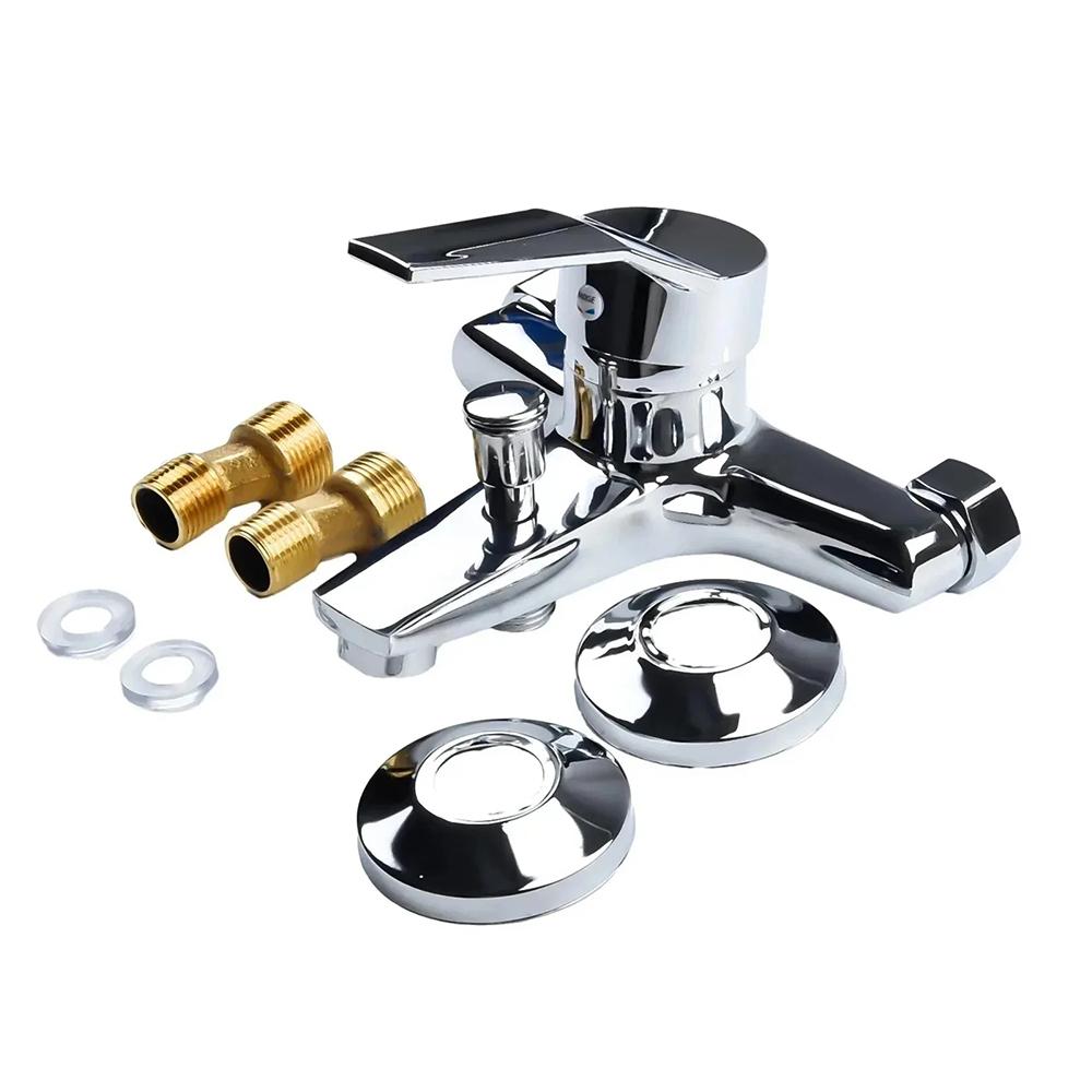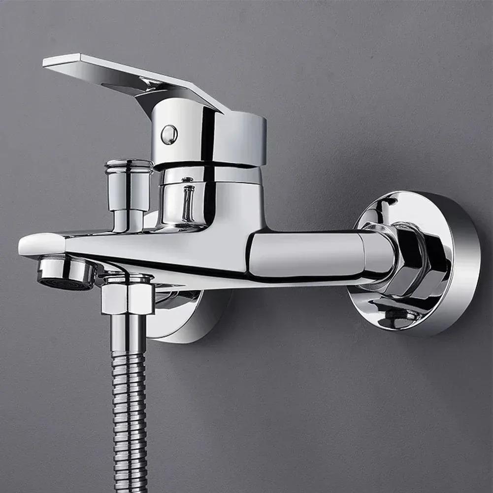 Смесители для раковины из цинкового сплава, хромированный настенный смеситель для горячей и холодной воды, двойной излив, одна ручка для ванной комнаты, душевая раковина