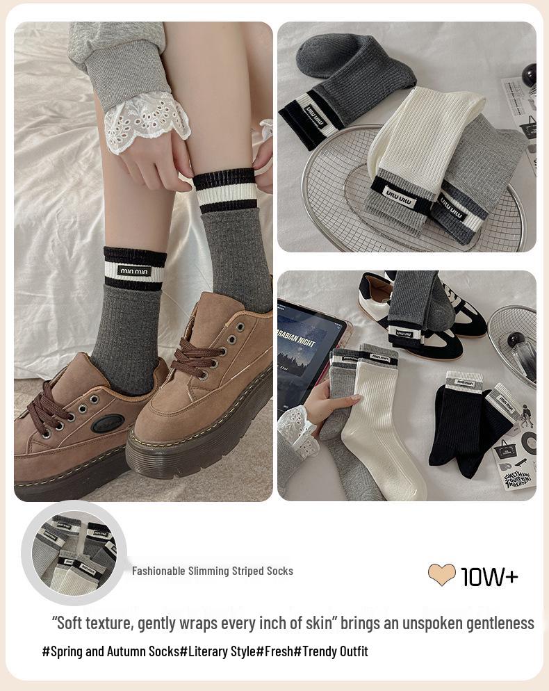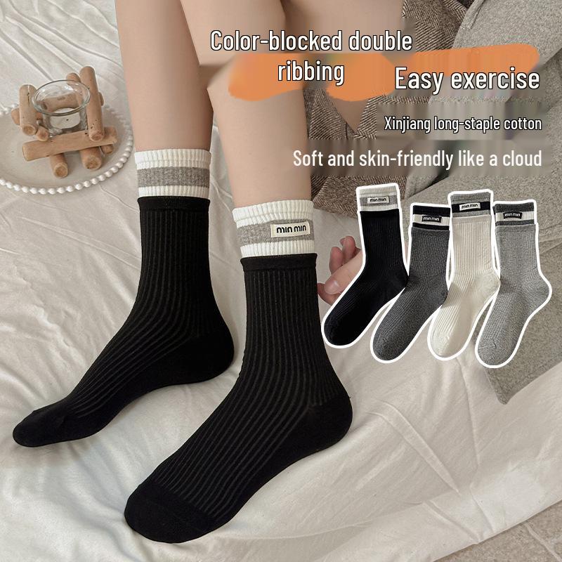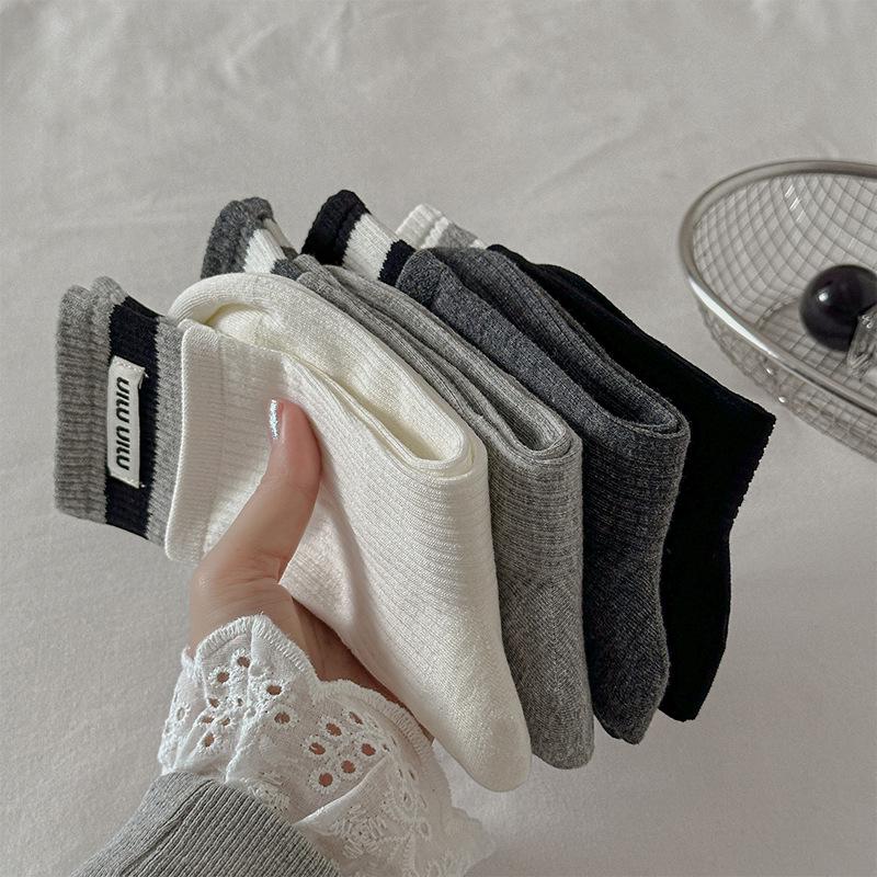 Женские хлопковые носки до середины икры с присборкой - Балетный стиль Japanese Miu, Универсальные для осени/зимы