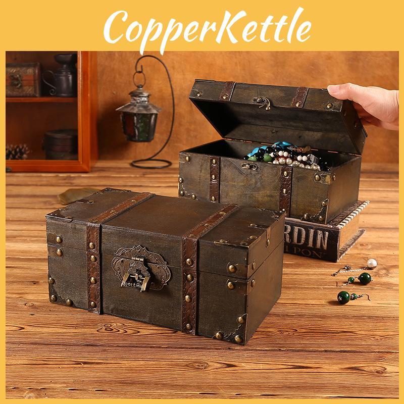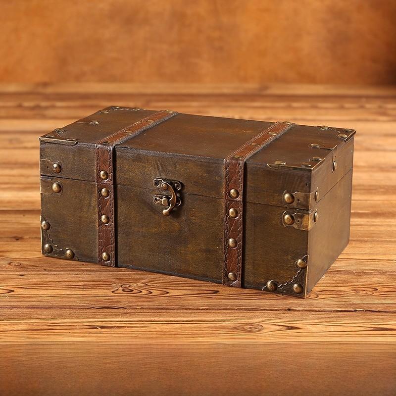 Деревянный настольный винтажный ящик для хранения с замком для организации и декора дома и офиса