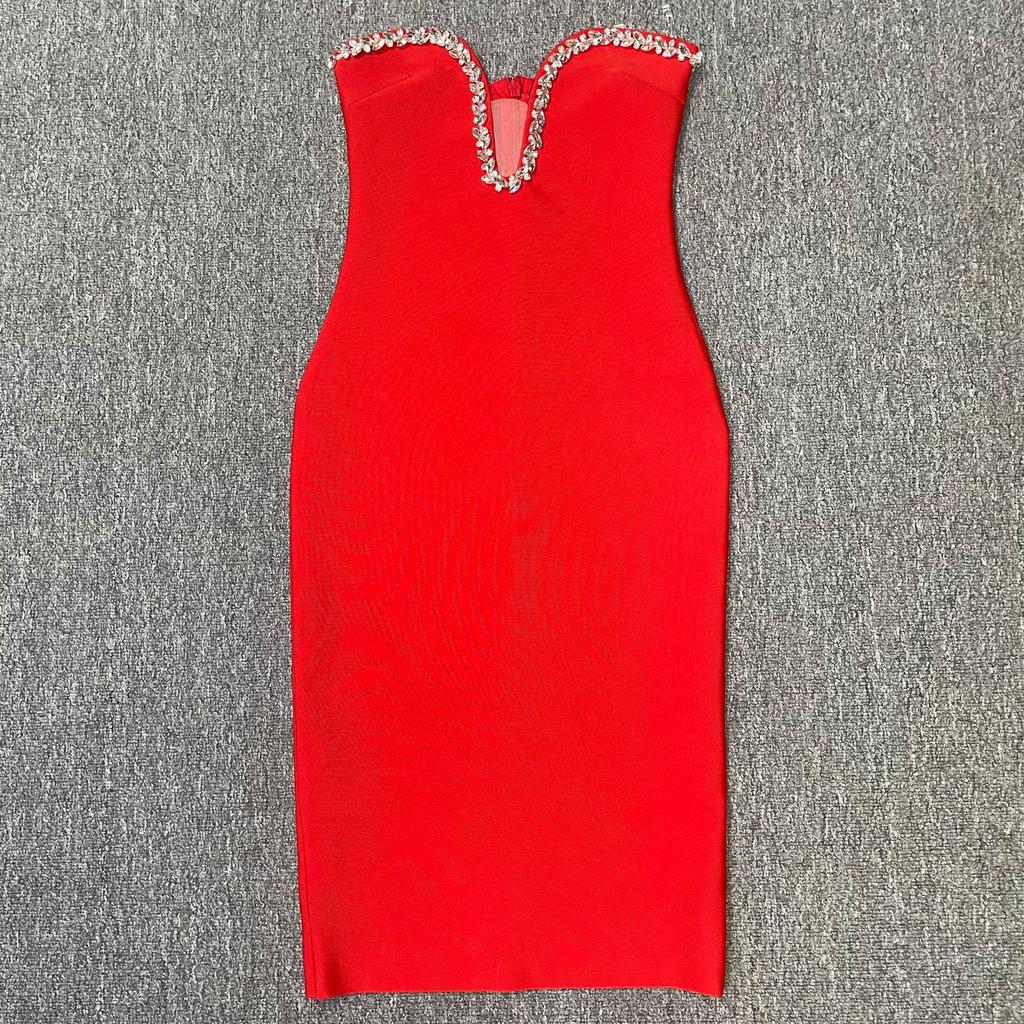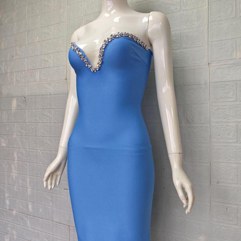 Элегантное вечернее платье-бандаж со стразами