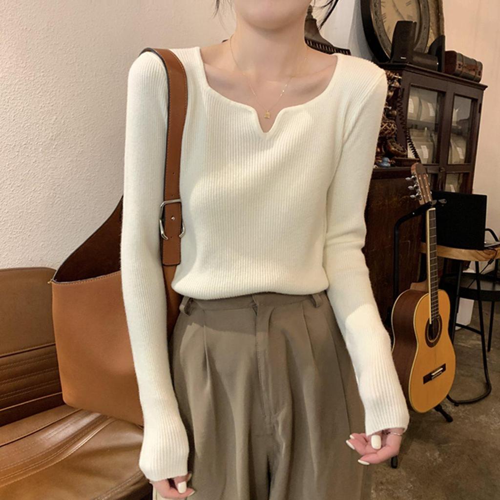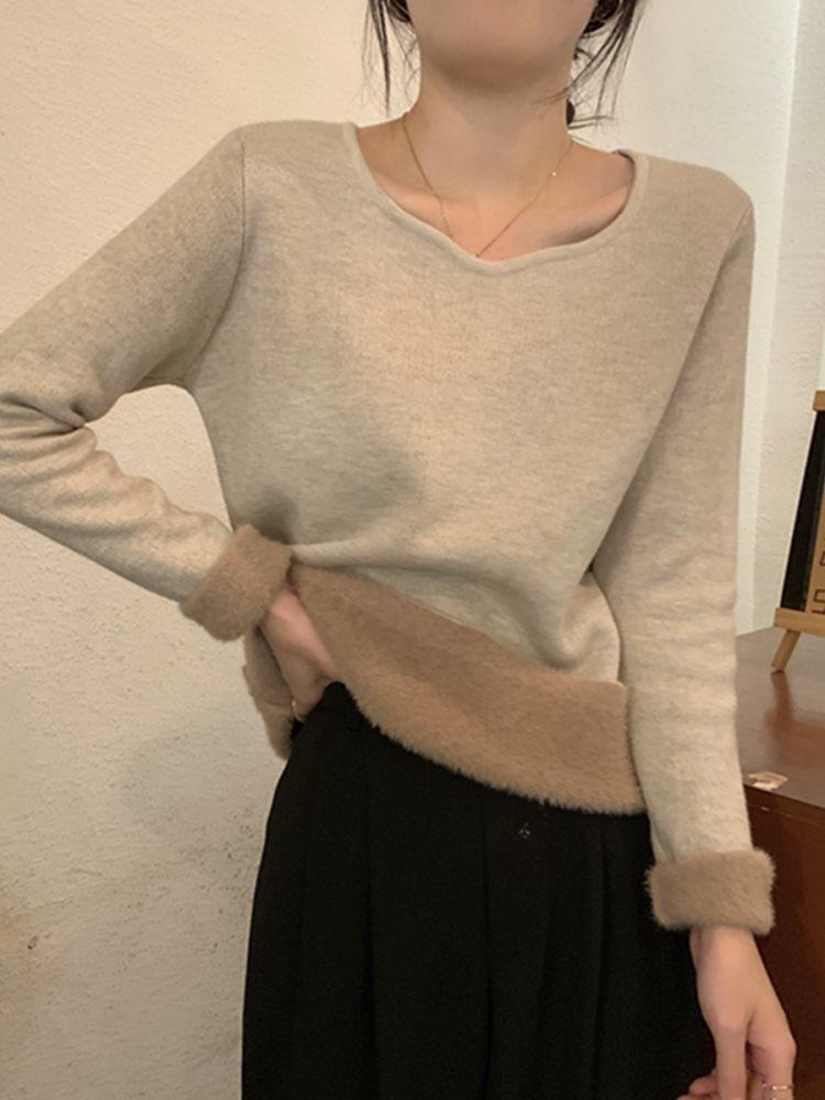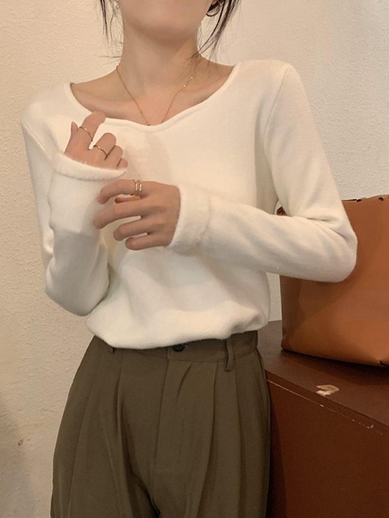Women's Fleece-Lined Square Neck Sweater: Knit, Long Sleeve, Base Layer for Spring, Autumn, Winter 2025