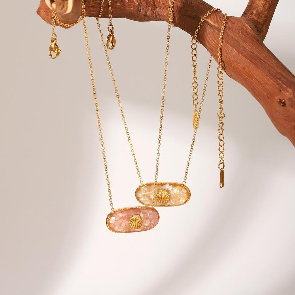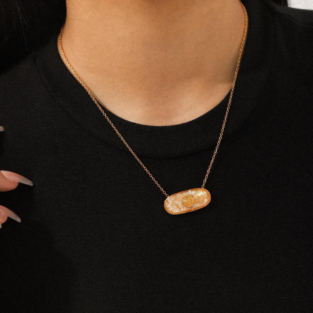 Европейское и американское ожерелье из нержавеющей стали в океанском стиле с кулоном в виде ракушки из эпоксидной смолы для женщин.
