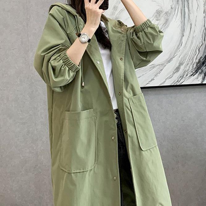 Женский тренч средней длины с капюшоном - Осень 2025, корейский стиль, свободный крой, кэжуал, плюс сайз. — купить товар онлайн с бесплатной доставкой по всему миру!