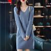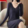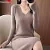 Женское вязаное платье-свитер Hengyuanxiang с V-образным вырезом из кашемира - средней длины, с длинным рукавом