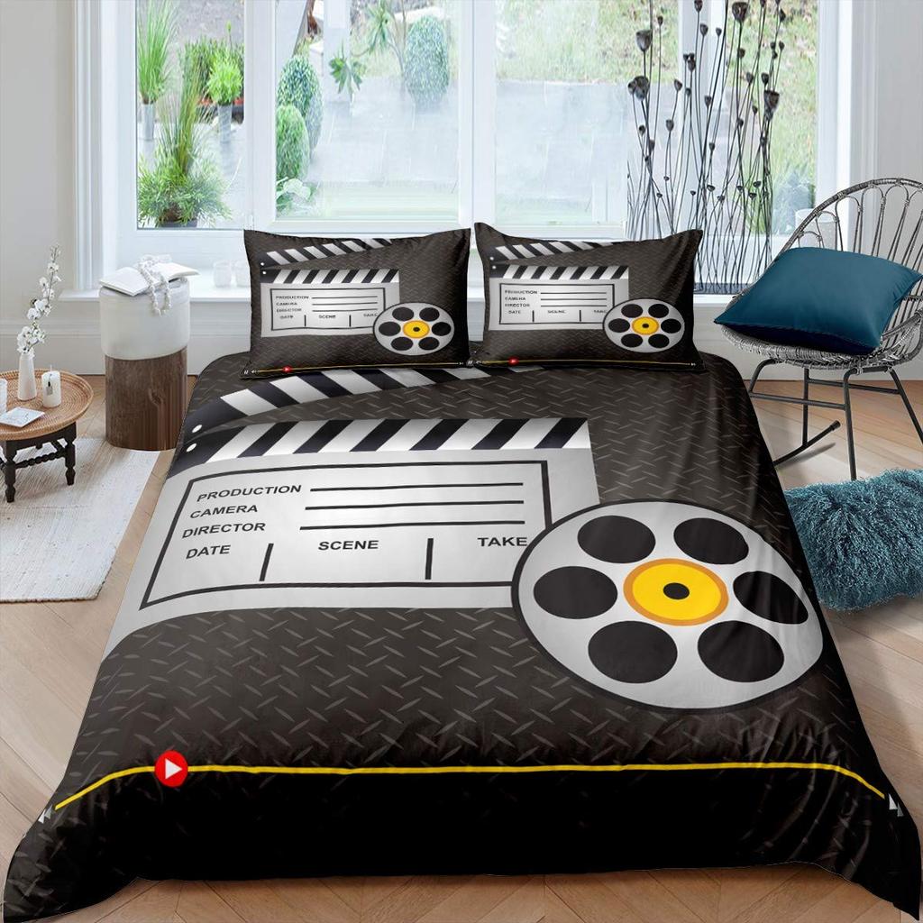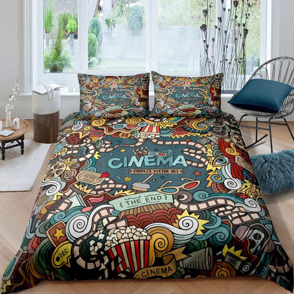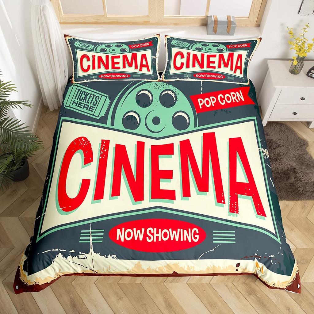 Movie Theater Duvet Cover Set Cinema Ticket Bedding Set Filmstrip Comforter Cover Bedroom Decor Bedspread Cover Full Size 2/3pcs