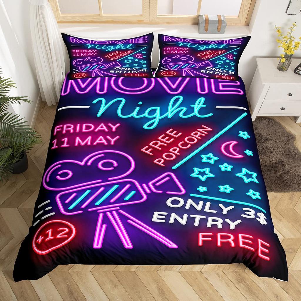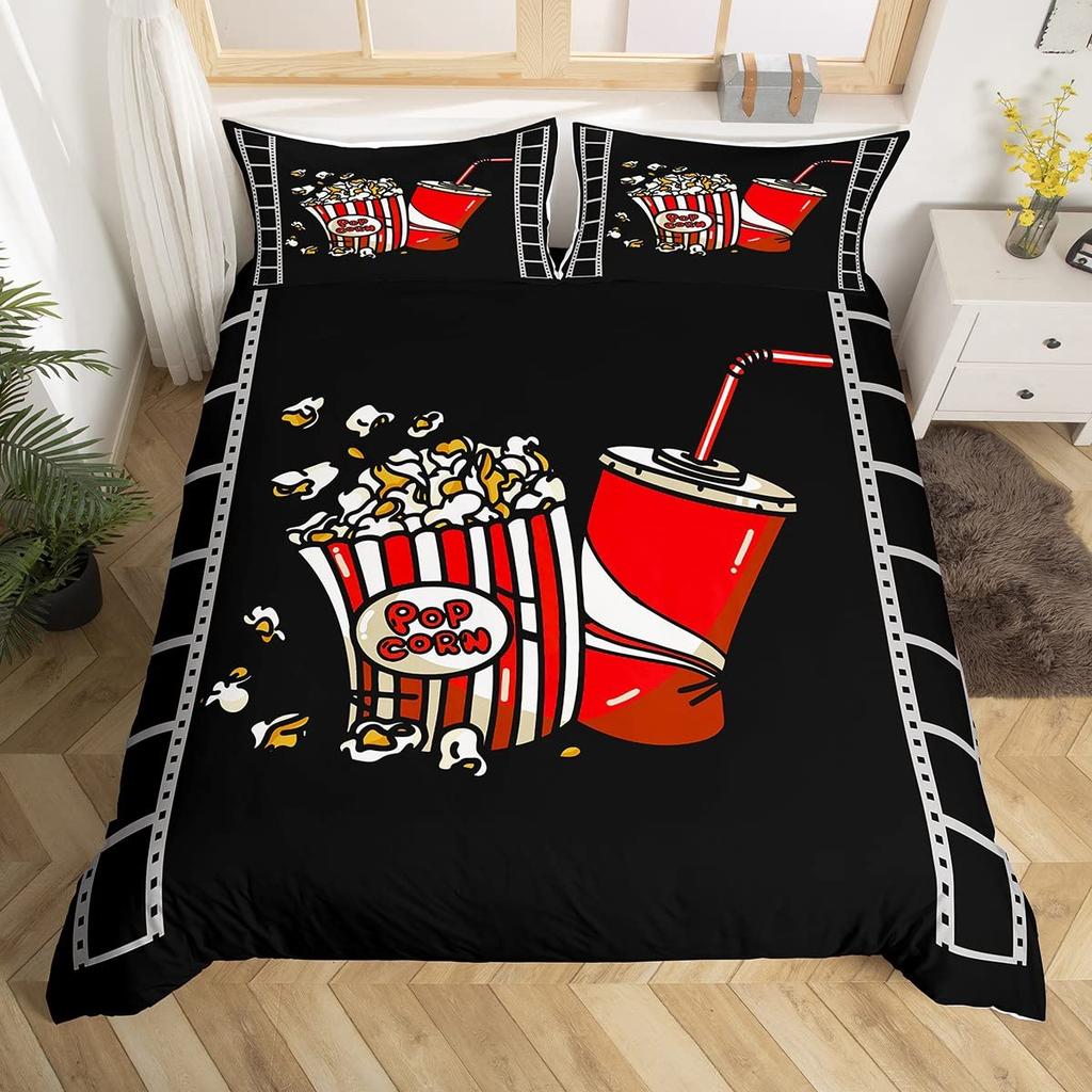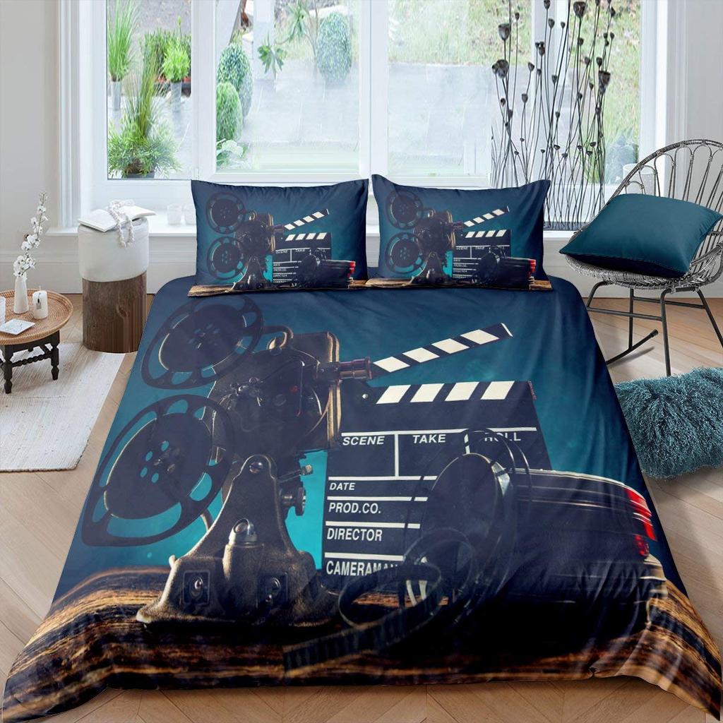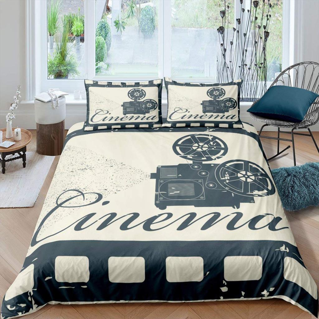 Movie Theater Duvet Cover Set Cinema Ticket Bedding Set Filmstrip Comforter Cover Bedroom Decor Bedspread Cover Full Size 2/3pcs