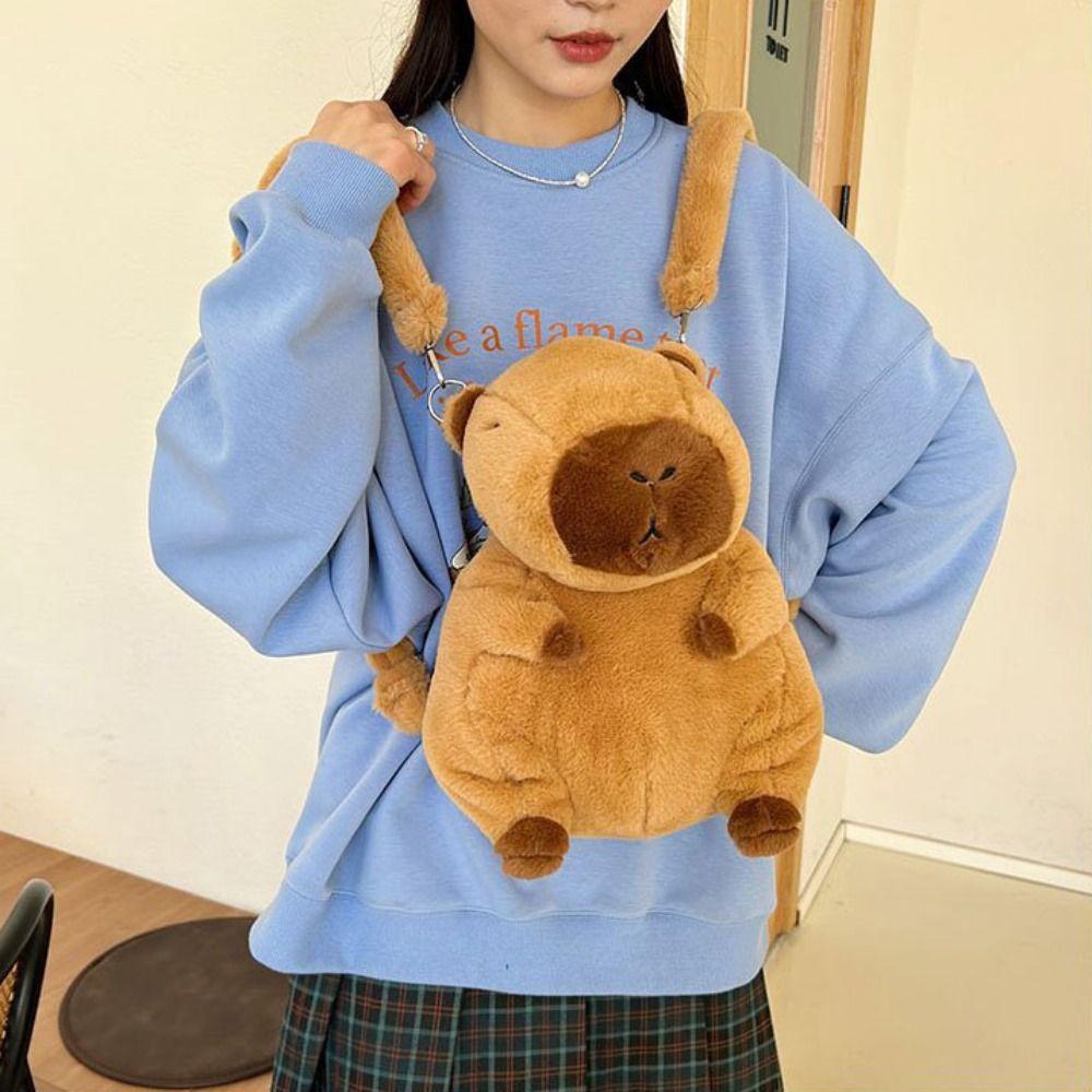 Плюшевый рюкзак Capybara Capybara Plush Backpack Большая вместимость Мультяшная сумка на плечо Детский подарок на день рождения