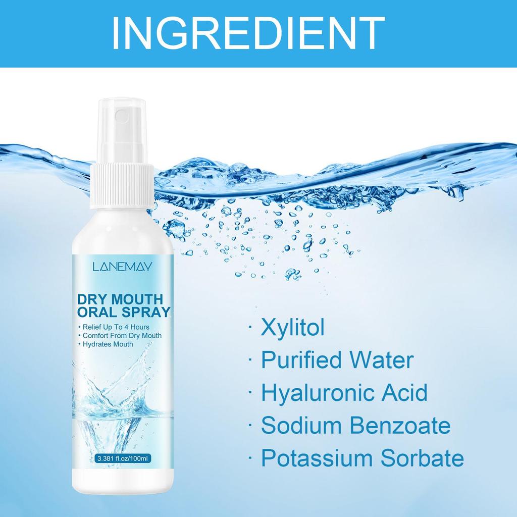 Спрей для полости рта от сухости во рту - Увлажняет рот и удерживает влагу - Облегчение на 4 часа - Свежее дыхание - Комфорт при сухости во рту, 100 мл