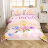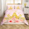 Fairy Tale Castle Bedding Set Twin QueenGirly Golden Castle Silhouette Duvet CoverBlooming Flowers Botanical Comforter Cover
