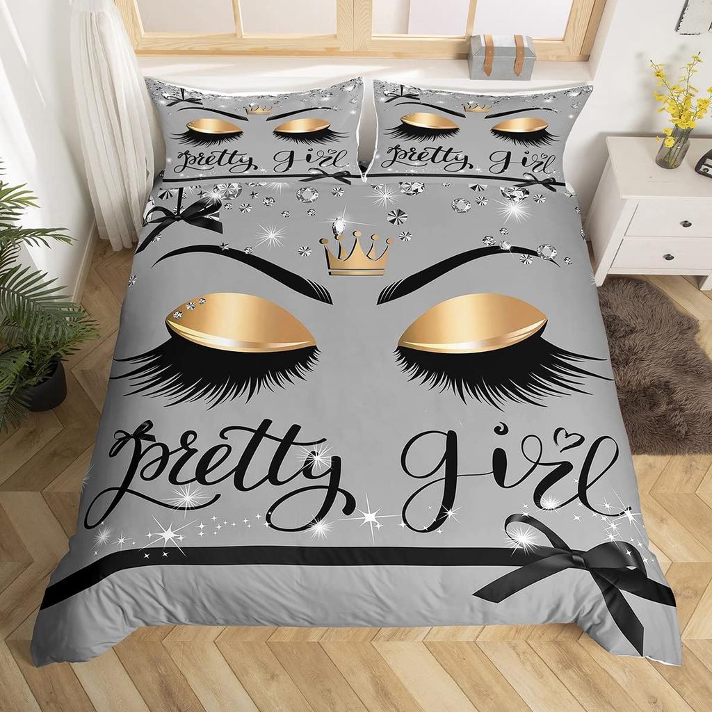 Пододеяльник для девочек с короной, ресницами, размера твин, квин, великолепный, с блестками, бриллиантами, в принцессном стиле, постельный комплект, романтичный пододеяльник с бантом