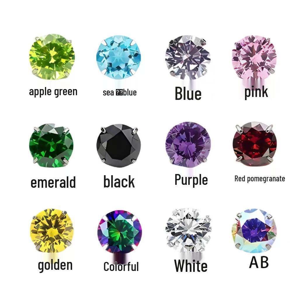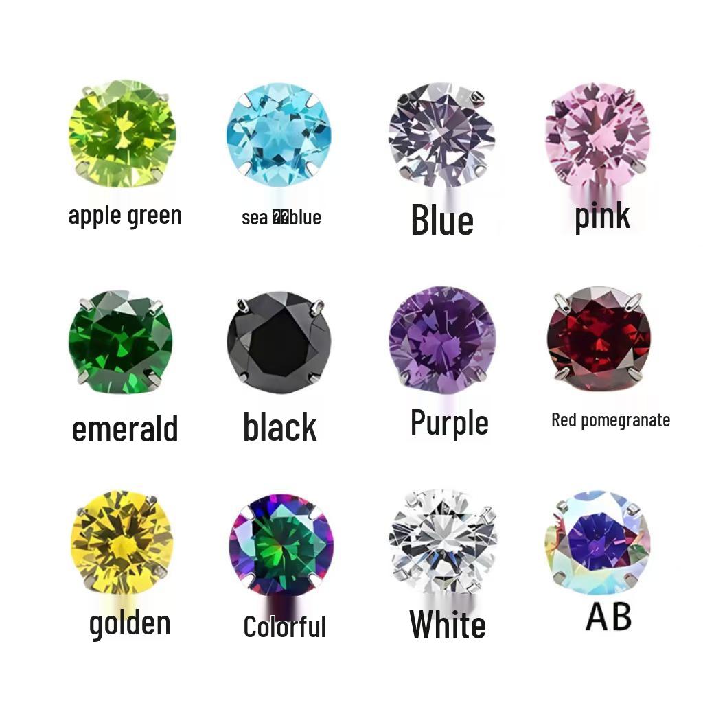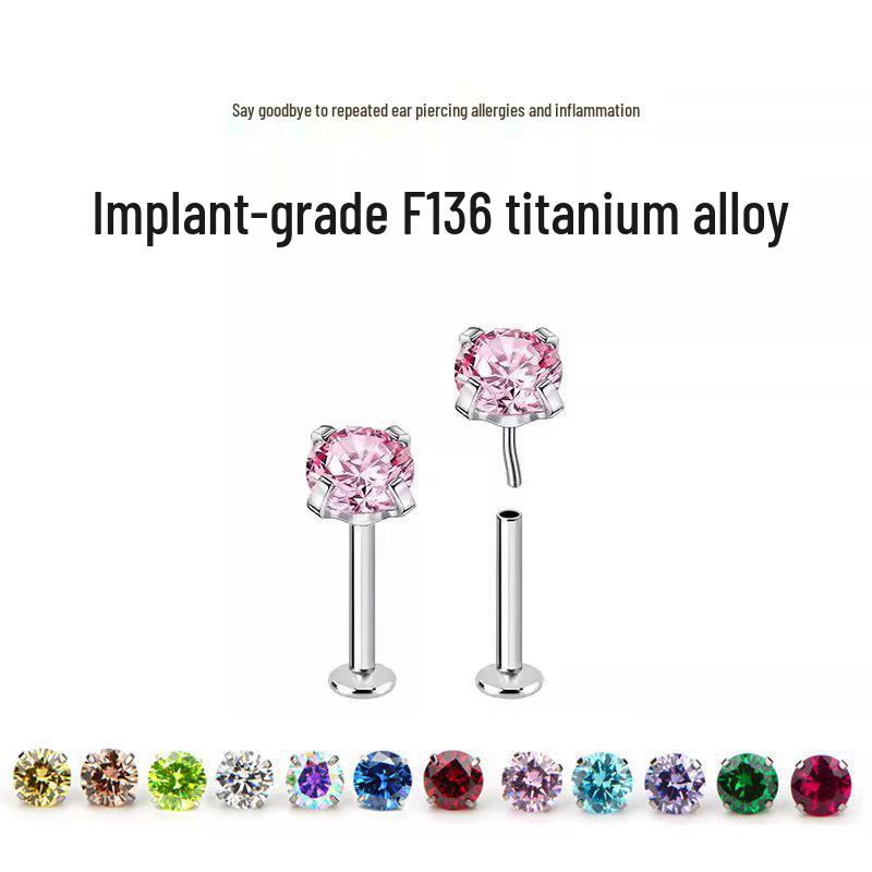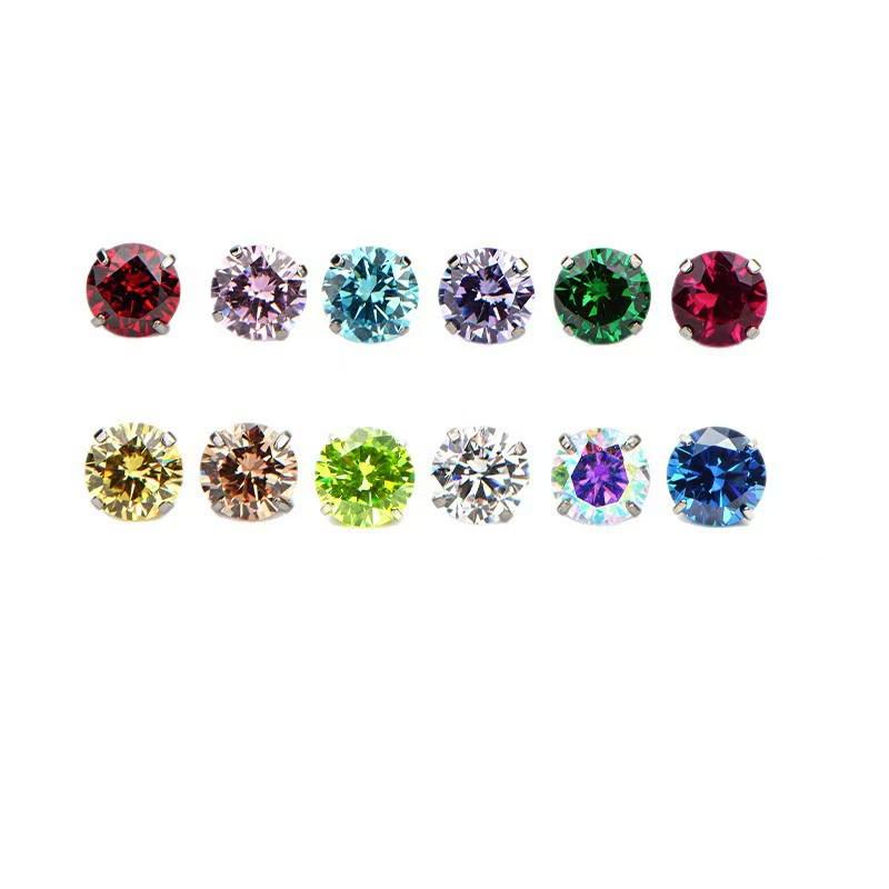 Изысканные титановые серьги-гвоздики с цирконом, на застежке-пуш-ап, с плоским дном