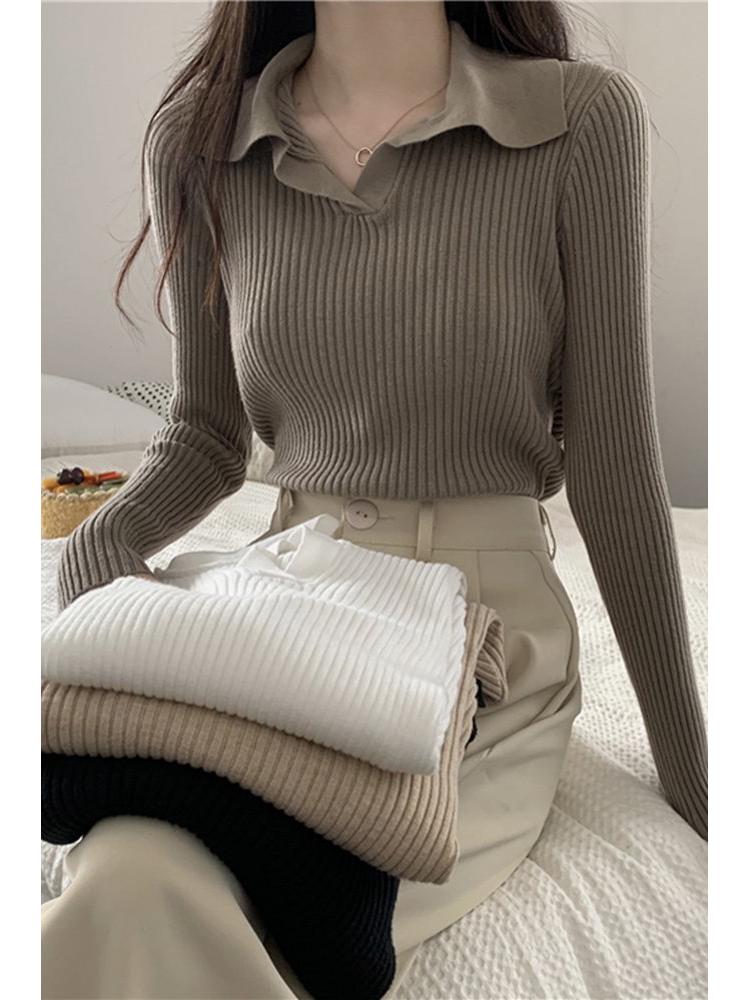 Женский трикотаж с длинным рукавом и воротником поло, корейский приталенный рубчатый топ для весны/лета 2025 — купить товар онлайн с бесплатной доставкой до всему миру!