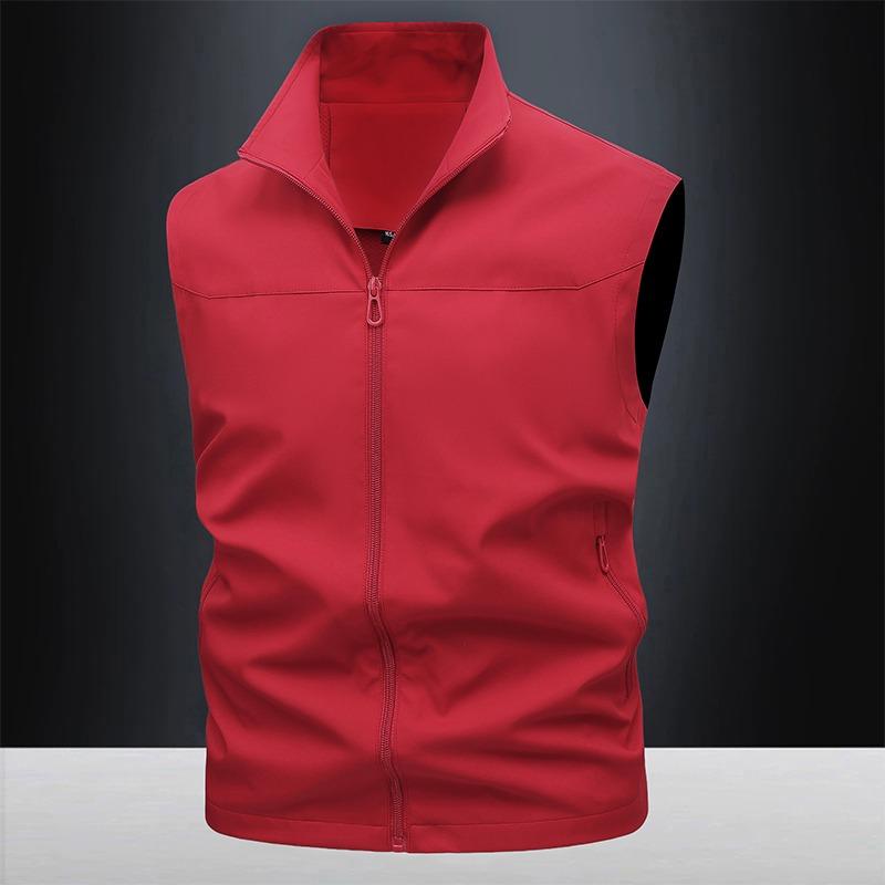Однотонный кардиган без рукавов с карманом на молнии, модный топ-жилет с высоким воротником