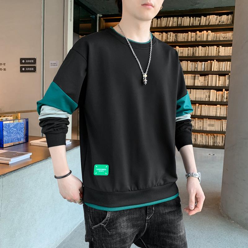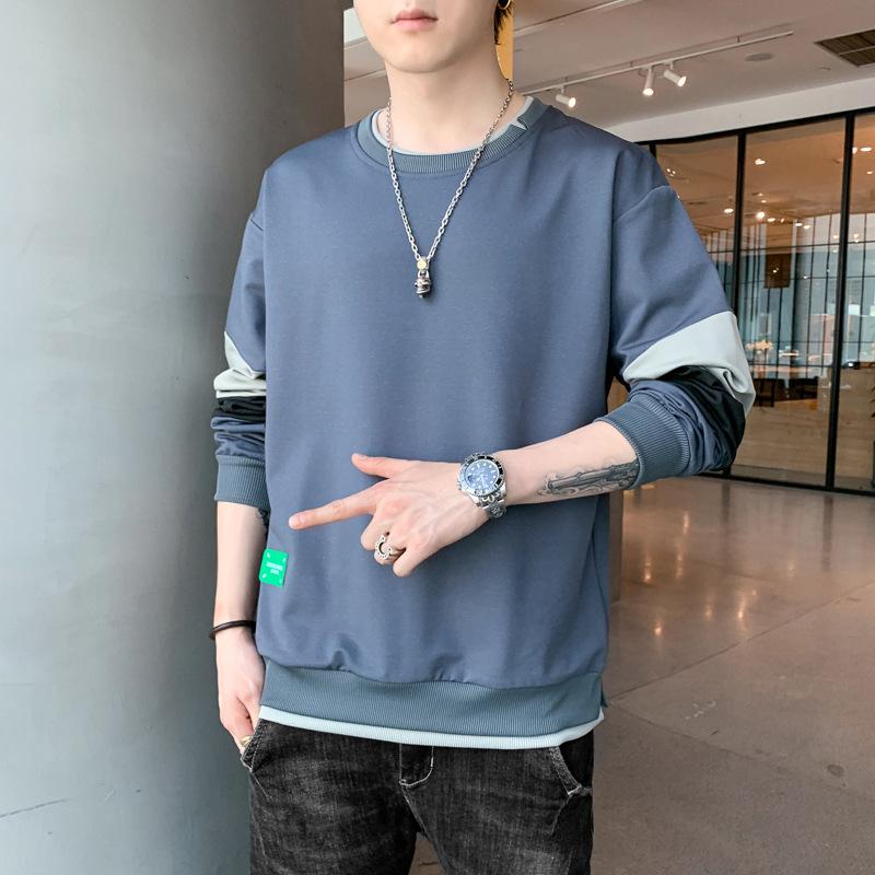 Свитшот в корейском стиле с круглым вырезом и имитацией двух частей, мужской, новый стиль, весенне-осенняя мода, повседневный, универсальный, с длинным рукавом