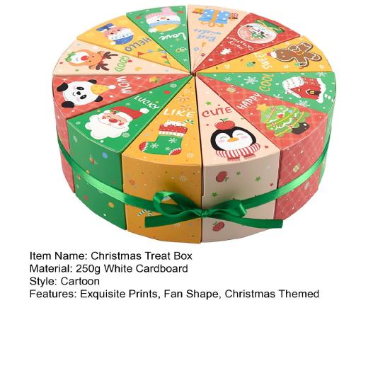 Изготовленные из прочных материалов, эти коробки прочные и устойчивые к растрескиванию. Уникальный веерообразный дизайн в стиле торта отличает их от традиционных подарочных коробок, выделяя ваши подарки.. Поднимите свой опыт дарения подарков на новый уровень с нашим креативным и праздничным набором коробок для рождественских угощений!