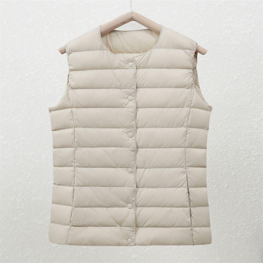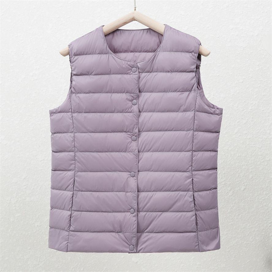 Оставайтесь в тепле и стильными в холодные месяцы с этим легким жилетом без воротника и рукавов, разработанным специально для женщин.. Наполненный утеплителем из утиного пуха, он обеспечивает тепло без лишнего объема, что делает его идеальным в качестве внутреннего слоя под вашу любимую зимнюю куртку.. Этот жилет, изготовленный из смеси спандекса и роскошно подшитый шениллом, обеспечивает как комфорт, так и нотку элегантности, представляя собой идеальный баланс функции и моды для вашего зимнего гардероба.