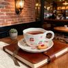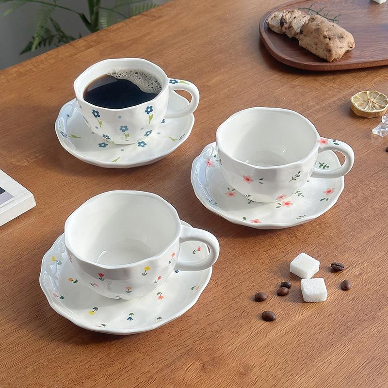 Керамический кофейный набор (чашка и блюдце) в корейском стиле с ручной лепкой и цветочным узором - Ручная роспись, идеально подходит для послеобеденного чая