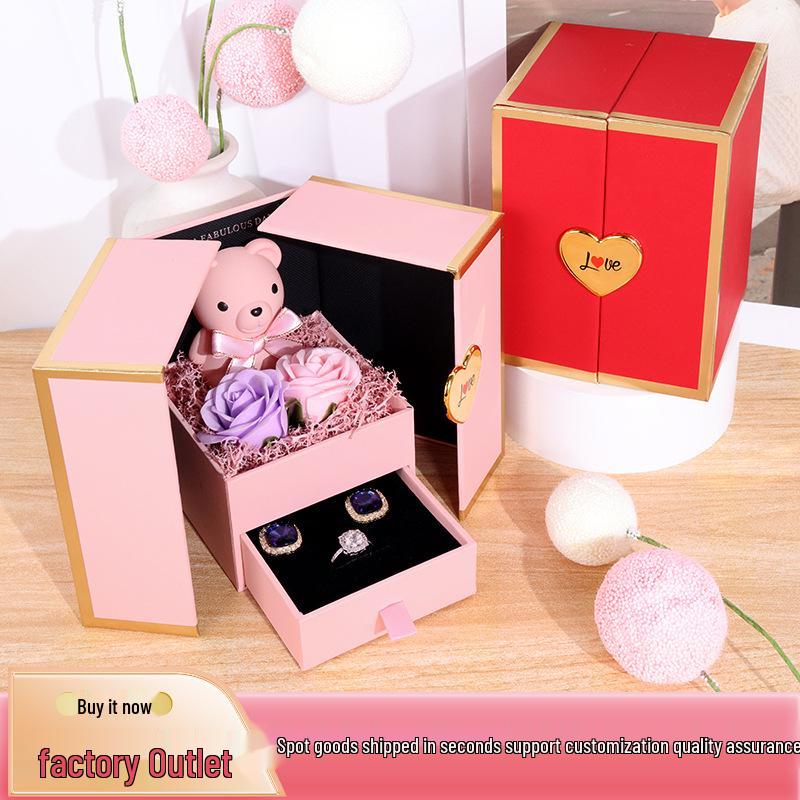 Подарочная коробка «Маленький медвежонок» с двойными дверцами: Сохраненная роза и ящик для украшений на дни рождения и День святого Валентина — купить товар онлайн с бесплатной доставкой по всему миру!