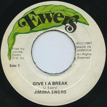7inch Record JIMIMA EWERS - Give I A Break NONE Ewers 1987 Jamaica Reggae, Ska & Dub Used