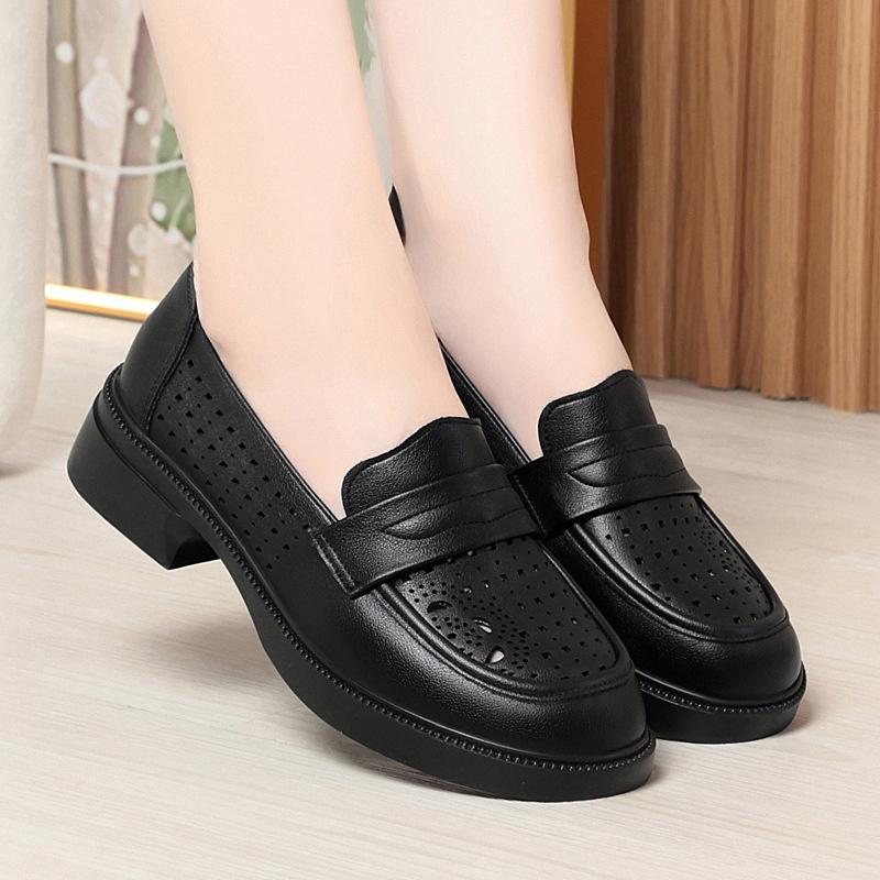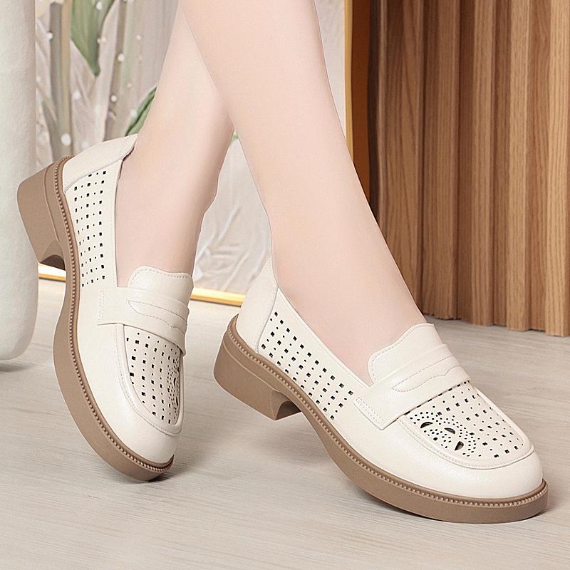 Летние новые модные милые туфли с круглым носком на мягкой подошве, нескользящие, дышащие, повседневные, из мягкой кожи, женские туфли на низком каблуке