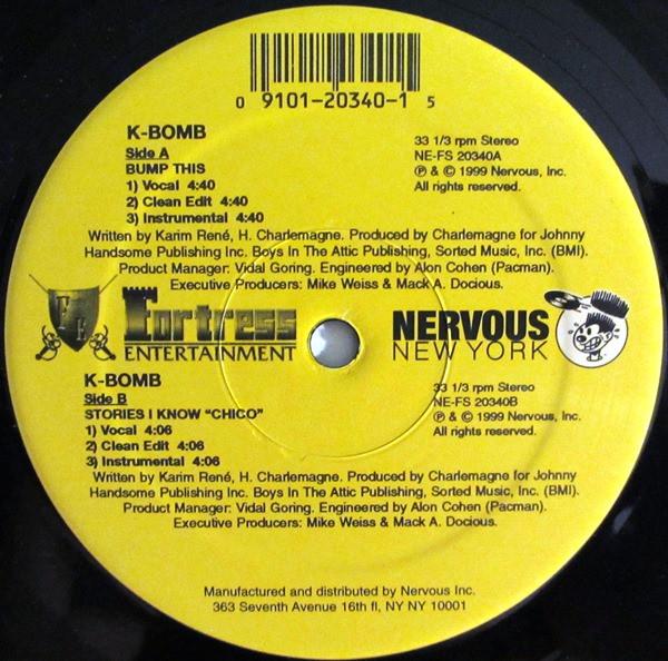12inch Record K-BOMB - Bump This / Stories I Know "Chico" NEFS20340 Nervous Records 1999 US Rap & Hip-Hop/R&B Used