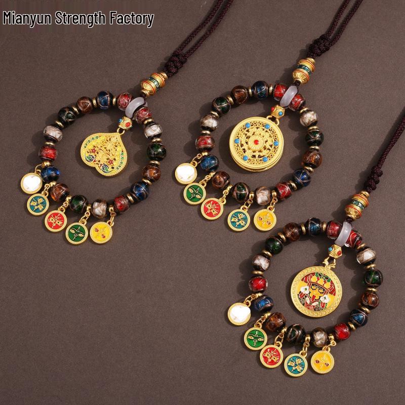 Tibetan Wealth God Zhakila Lhamo Incense Ash Glass Pendant - Five Directions Car Charm, Metal Retro Style — купить товар онлайн с бесплатной доставкой по всему миру!