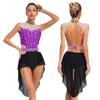Женское лирическое танцевальное платье с воротником-стойкой, без рукавов, с открытой спиной, с блестящими стразами, цветное блочное, сетчатое — купить товар онлайн с бесплатной доставкой по всему миру!