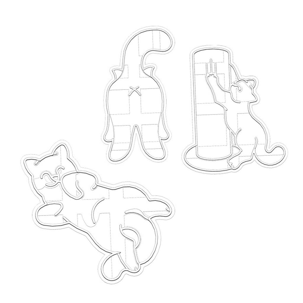 3Pcs Cartoon Cat Cookie Cutters Cartoon Pressable Biscuit Mold Holiday Biscuit Fondant Cookie Stamps Party Supplies