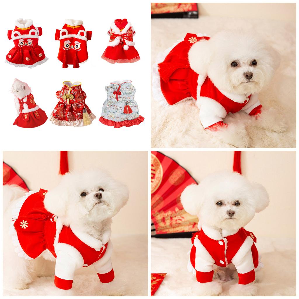 Костюм Тан для домашней собаки, теплая одежда, праздничный собачий слитный костюм для снега, подарок для крупной собаки, утолщенный костюм Тан для щенка, наряд ципао