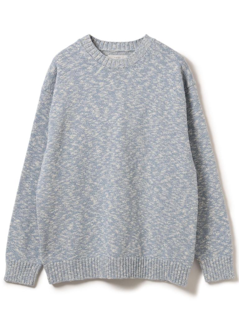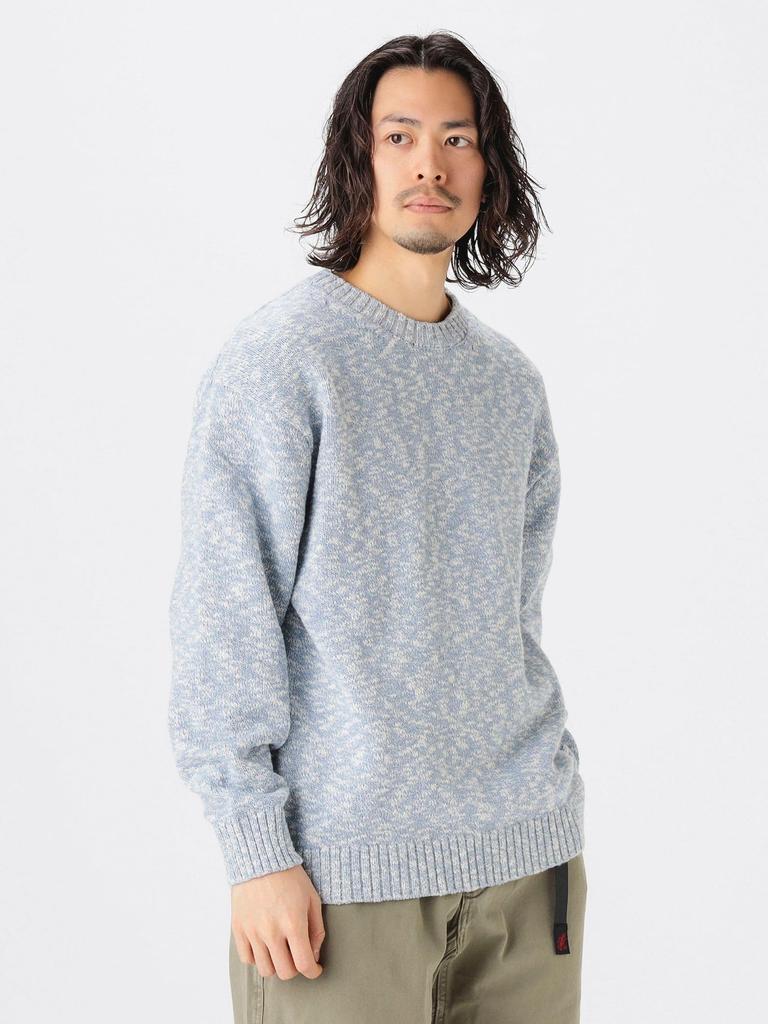 В:MING LIFE STORE by BEAMS Мужской трикотаж крупной вязки с круглым вырезом из фактурного стрейч-слаба (SAX M_92150360286)