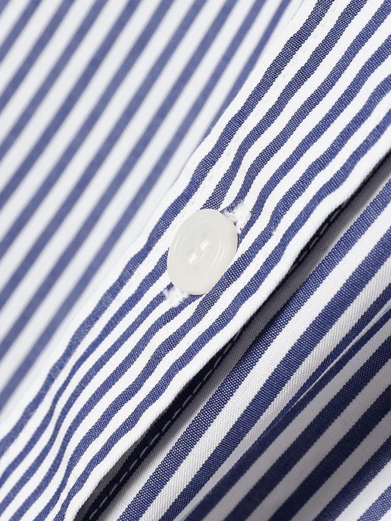 Простая, элегантная рубашка. Левый нагрудный карман добавляет тонкий акцент. Сборки на спине создают мягкое, легкое ощущение. Обычный воротник позволяет легко вписать его в любой наряд.