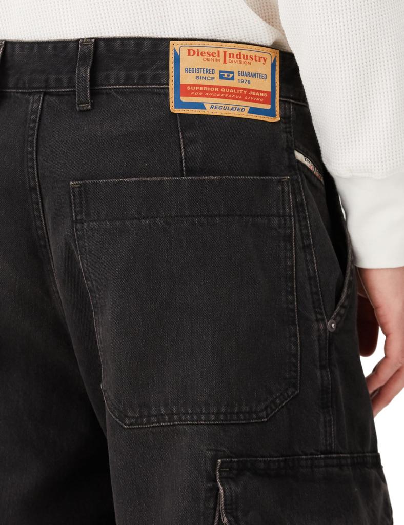 Diesel Men's D-FISH-CARGO Loose Straight Denim, Size 36, Black, Size 02, A133380KIAG