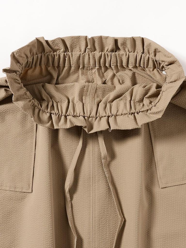 Water-repellent, textured soccer fabric. While unlined, it offers a cool, opaque feel.